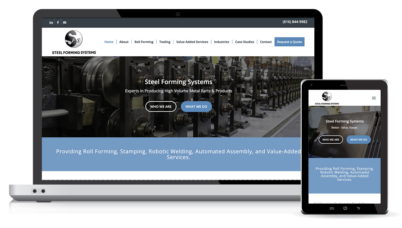 Steel Forming Systems, Inc is a leading manufacturer of metal roll formed components and produces high volume metal parts from a wide variety of steel types, coppers and aluminum substrates. They were looking for a clean and simple website design with a clear and concise Call to Action. Ben Perfect was hired for photography services, to showcase the Art of Roll Forming and team atmosphere of SFS. We are currently working on increasing the organic search visibility of the website as well as building a PPC Campaign. I look forward to working along with the team on their digital media.